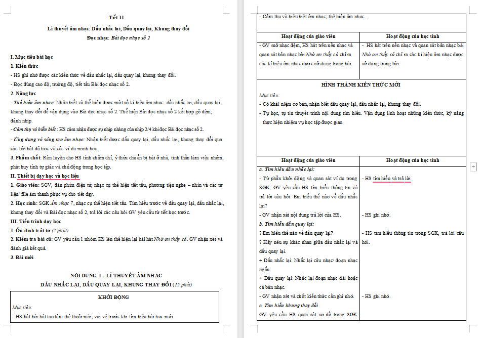 Giáo án Âm nhạc 7 Tiết 11: Lí thuyết âm nhạc Dấu nhắc lại, dấu quay lại, khung thay đổi Đọc nhạc - Bài đọc nhạc số 2