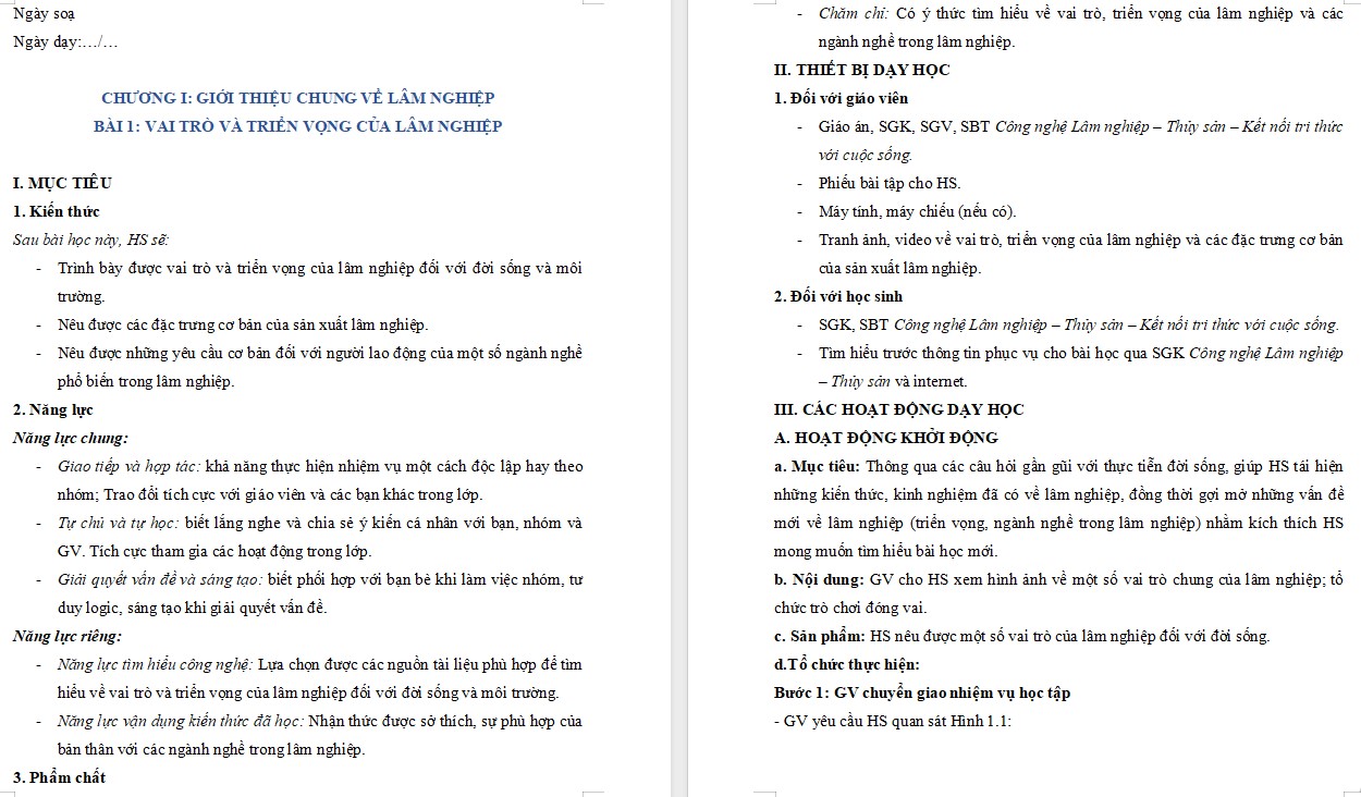 Mời các bạn xem trọn bộ giáo án Word/PPT Bài Vai trò và triển vọng của lâm nghiệp môn Công nghệ 12 KNTT trong file tải về.