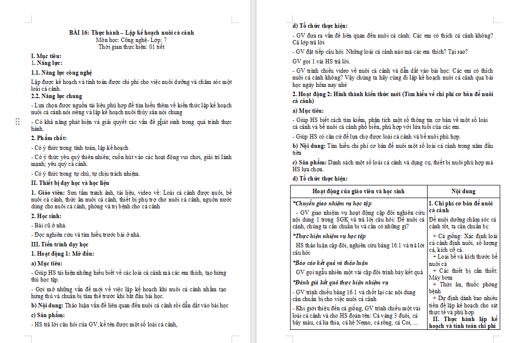 PowerPoint Công nghệ 7 Kết nối tri thức Bài 16 được thiết kế chi tiết bám sát nội dung trong SGK với nhiều hình ảnh đẹp mắt, giúp bài giảng trở nên hấp dẫn hơn. Vậy sau đây là nội dung chi tiết Giáo án Công nghệ 7 Bài 16: Thực hành Lập kế hoạch nuôi cá cảnh, mời các bạn tải tại đây.