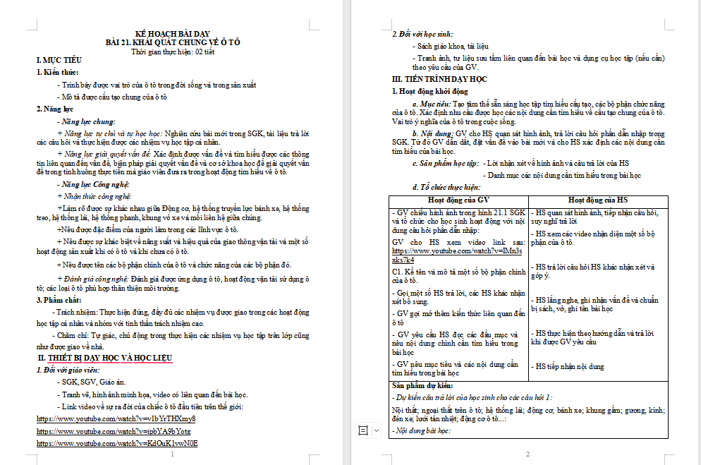 2. Giáo án Công nghệ 11 Bài 21: Khái quát chung về ô tô