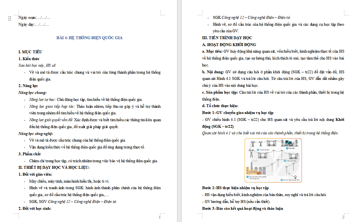 Giáo án PowerPoint Công nghệ 12 Bài 4: Hệ thống điện quốc gia Giáo án Công nghệ lớp 12 Kết nối tri thức (Word + PPT)