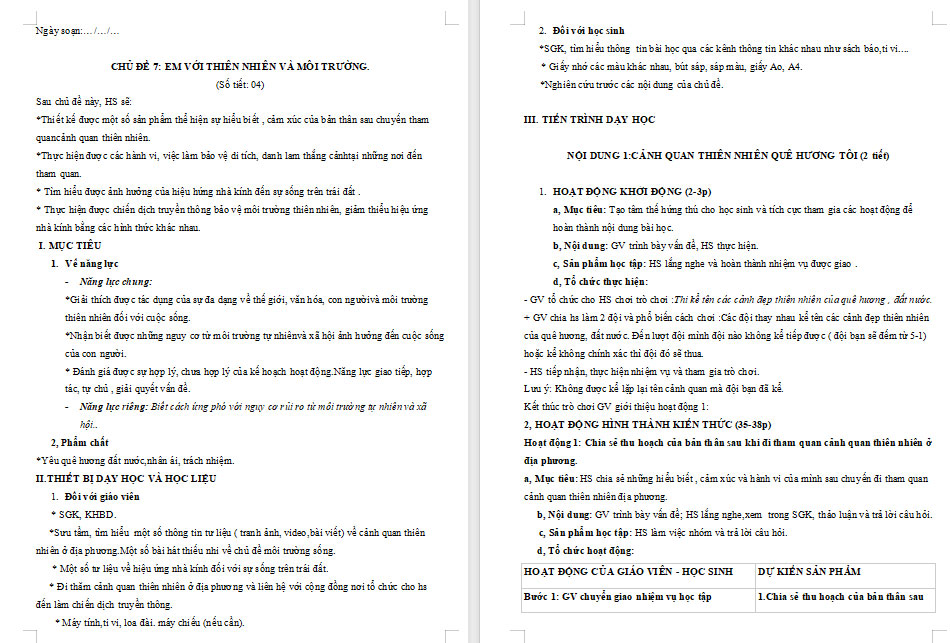 Tìm hiểu thêm »Giáo án PowerPoint Hoạt động trải nghiệm 7 Bài 1: Cảnh quan thiên nhiên quê hương tôi là tài liệu rất hữu ích được biên soạn cả dạng Word + PPT. Qua đó giúp quý thầy cô tiết kiệm thời gian làm bài giảng điện tử cho riêng mình.