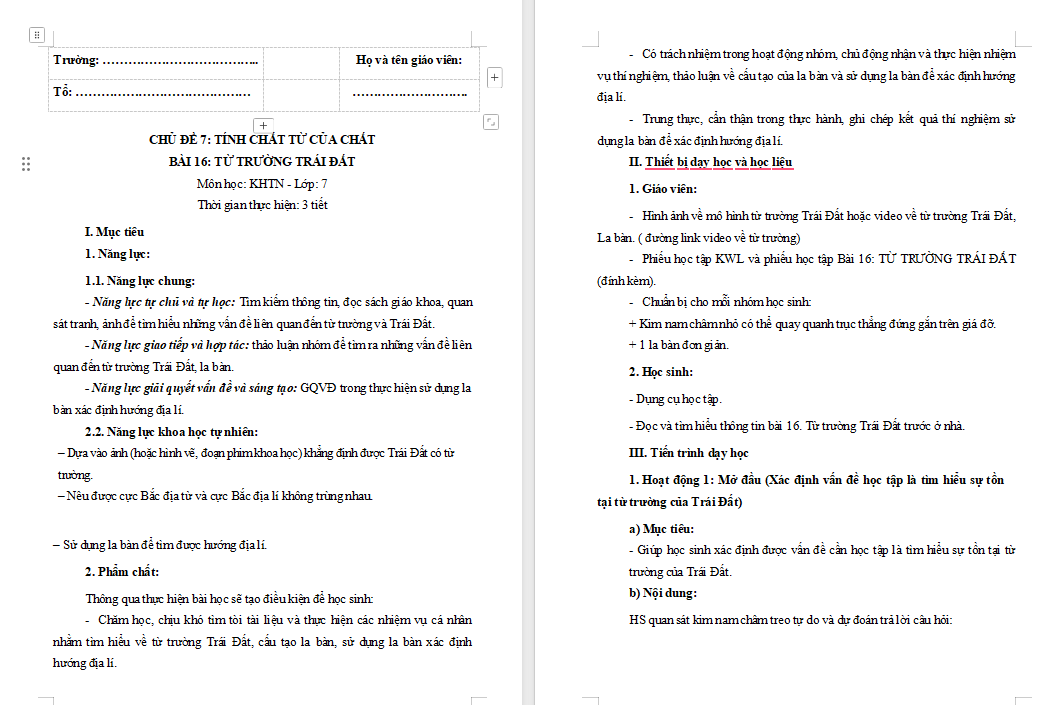 PowerPoint KHTN 7 Bài 16 Cánh diều được thiết kế chi tiết bám sát nội dung trong SGK Chủ đề 7: Tính chất từ của chất với nhiều hình ảnh đẹp mắt, giúp bài giảng trở nên hấp dẫn hơn. Vậy sau đây là nội dung chi tiết Giáo án Khoa học tự nhiên 7 Bài 16: Từ trường Trái Đất, mời các bạn tải tại đây.