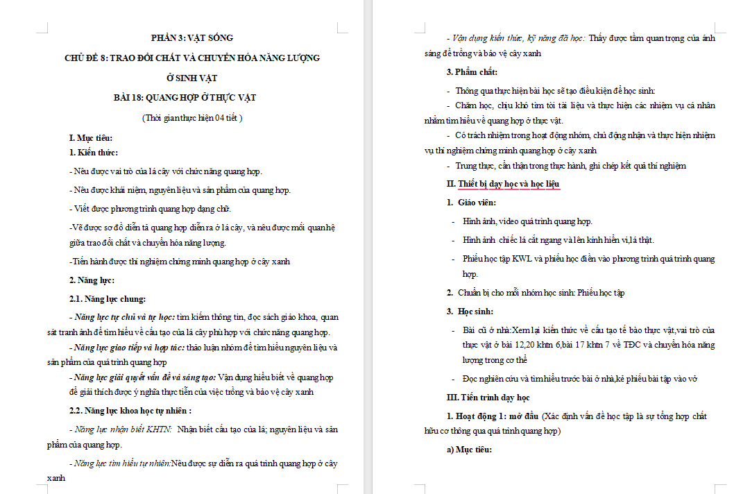 PowerPoint KHTN 7 Bài 18 Cánh diều được thiết kế chi tiết bám sát nội dung trong SGK Chủ đề 8 với nhiều hình ảnh đẹp mắt, giúp bài giảng trở nên hấp dẫn hơn. Vậy sau đây là nội dung chi tiết Giáo án Khoa học tự nhiên 7 Bài 18: Quang hợp ở thực vật, mời các bạn tải tại đây.