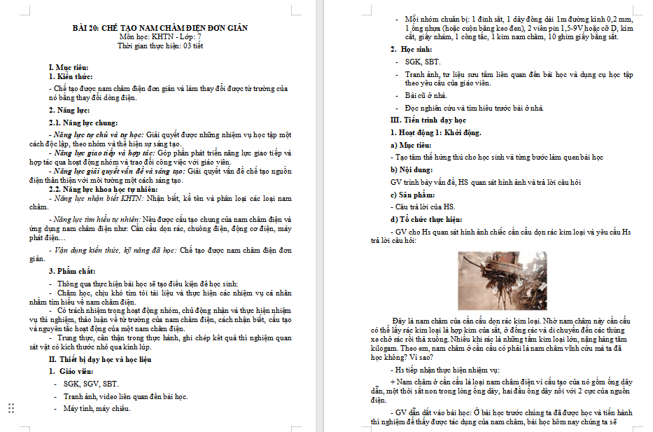 Giáo án PowerPoint Khoa học tự nhiên 7 Bài 20: Chế tạo nam châm điện đơn giản Giáo án KHTN lớp 7 Kết nối tri thức (Word + PPT)