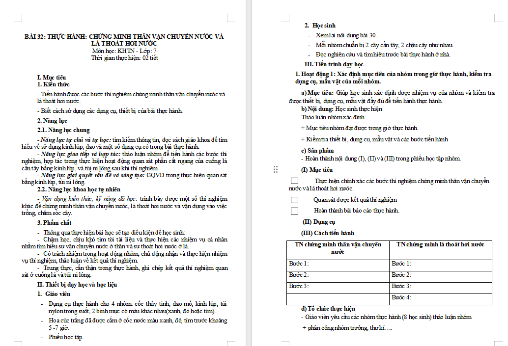 Mời các bạn tải file về để xem trọn bộ giáo án KHTN 7 Bài 32