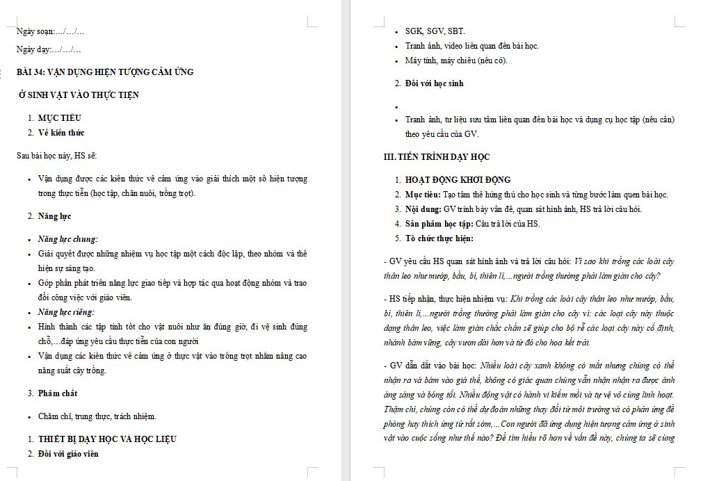 Mời các bạn tải file về để xem trọn bộ giáo án KHTN 7 Bài 34