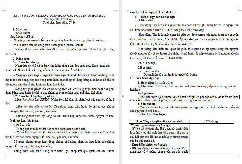 Giáo án Hóa học 7 Kết nối tri thức Bài 4