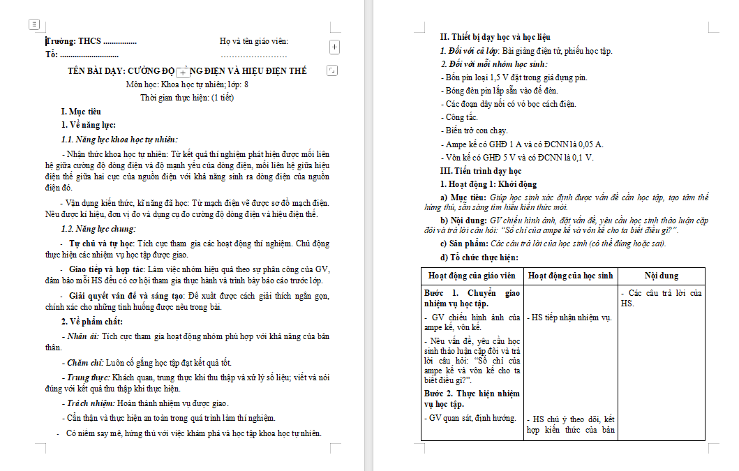 Giáo án PowerPoint Khoa học tự nhiên 8 Bài 24: Cường độ dòng điện và hiệu điện thế Giáo án KHTN lớp 8 Kết nối tri thức (Word + PPT)