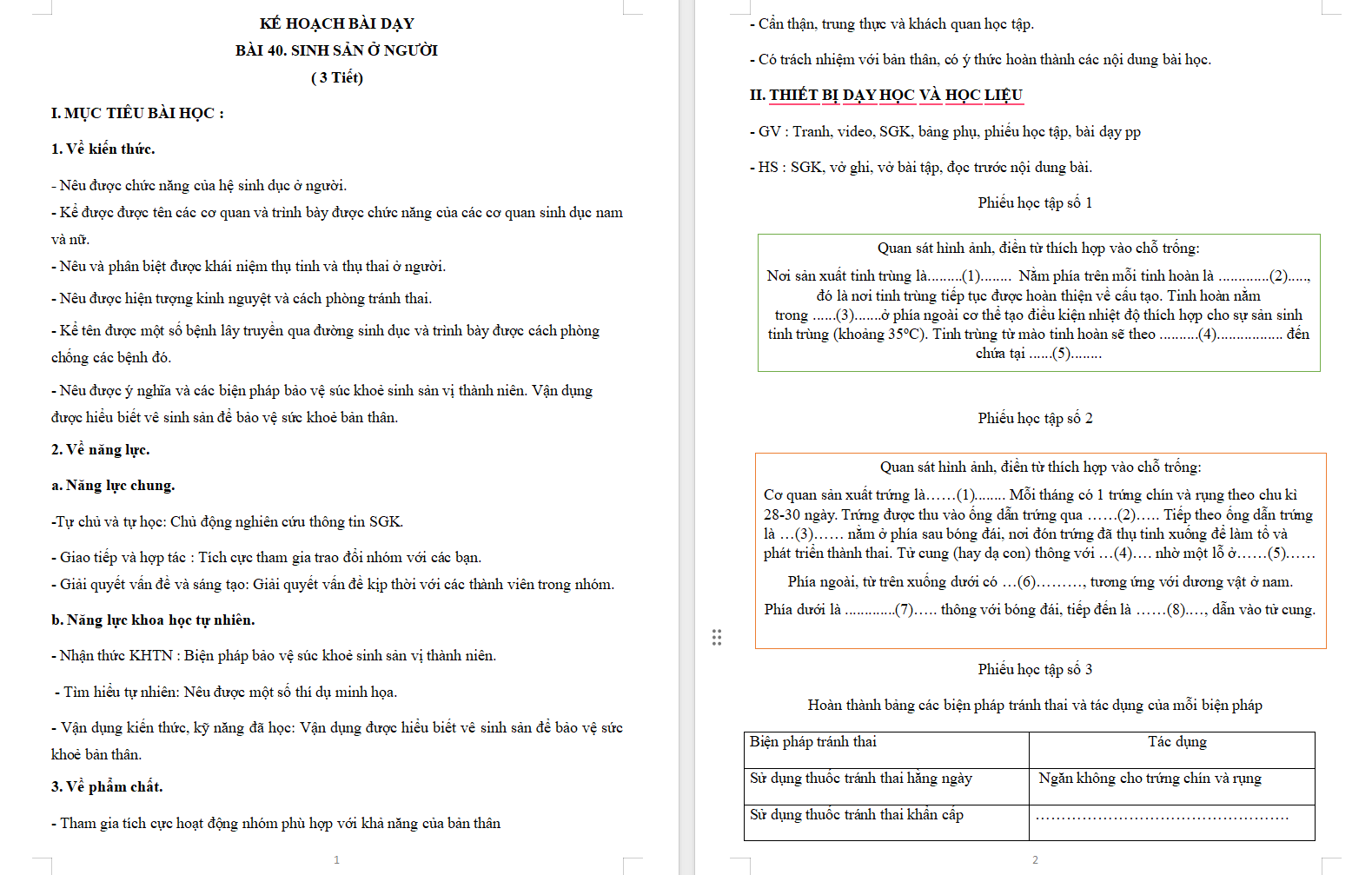Giáo án Sinh học 8 Kết nối tri thức Bài 40