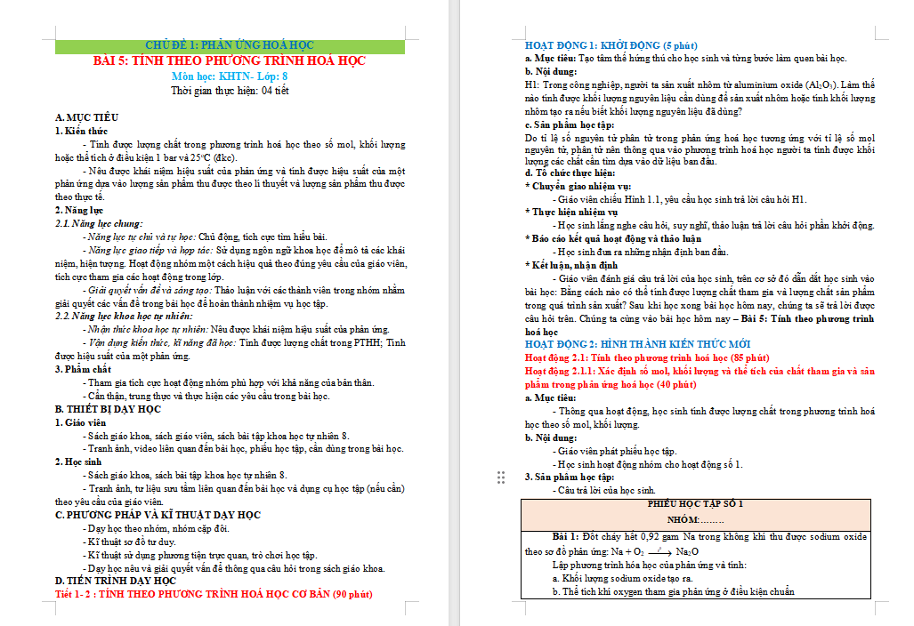 Giáo án PowerPoint Khoa học tự nhiên 8 Bài 5: Tính theo phương trình hóa học Giáo án KHTN lớp 8 Cánh diều (Word + PPT)