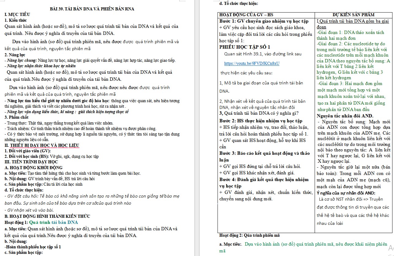 Giáo án PowerPoint Khoa học tự nhiên 9 Bài 39: Tái bản DNA và phiên mã tạo RNA Giáo án KHTN 9 Bài 39 Kết nối tri thức (Word + PPT)