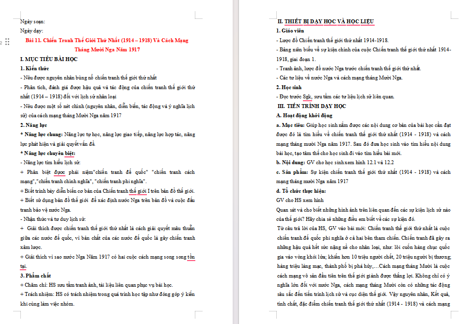 Giáo án PowerPoint Lịch sử 8 Bài 11: Chiến tranh thế giới thứ nhất và cách mạng tháng mười Nga năm 1917 Giáo án Lịch sử 8 Cánh diều (Word + PPT)