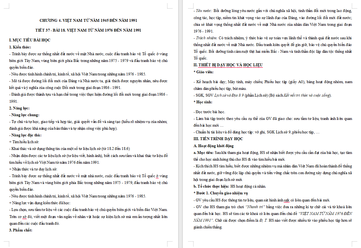 2. Giáo án Lịch sử 9 Bài 18: Việt Nam từ năm 1976 đến năm 1991