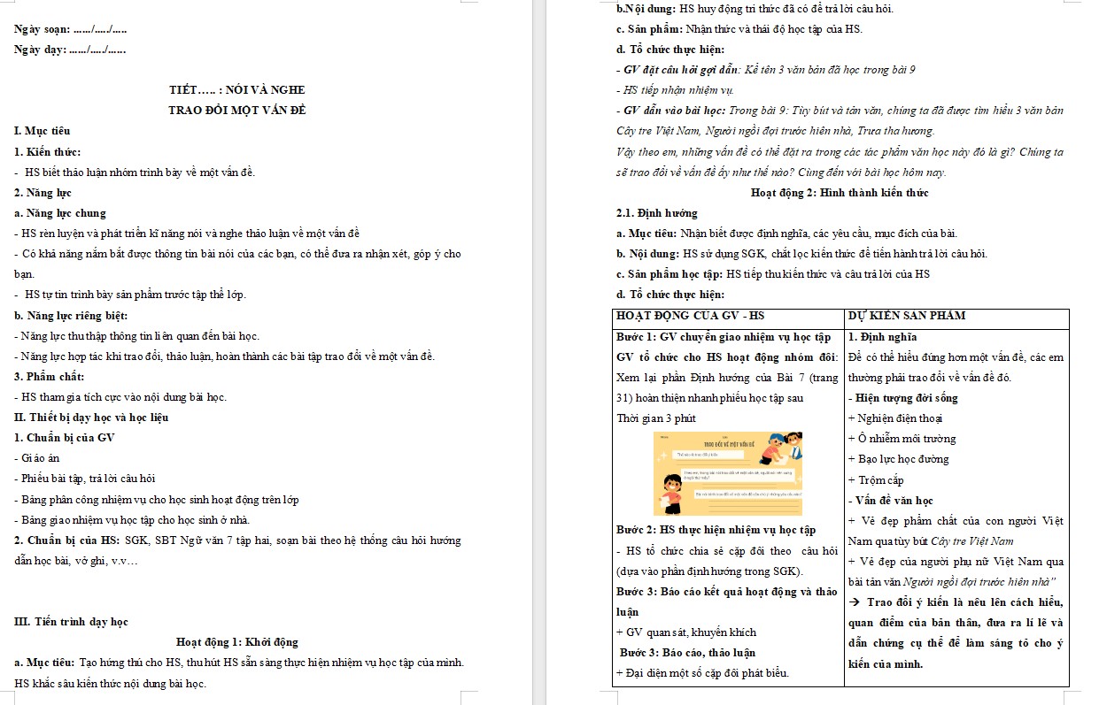 Tìm hiểu thêm »Giáo án PowerPoint Ngữ văn 7 Cánh Diều Bài Trao đổi về một vấn đề trong bài viết sau đây là trọn bộ mẫu giáo án Word và PowerPoint Ngữ văn 7 Cánh Diều Bài Nói và nghe Bài 9. Sau đây là nội dung chi tiết mẫu giáo án Bài Trao đổi về một vấn đề Văn 7, mời các bạn cùng tham khảo.