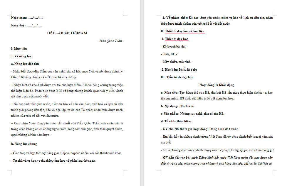 2. Giáo án Ngữ văn 8 Bài 5: Hịch tướng sĩ