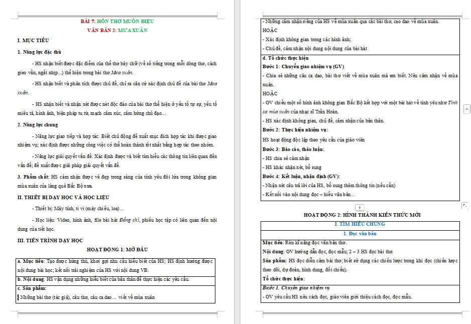 Giáo án PowerPoint Ngữ văn 9 Bài 7: Mưa xuân Giáo án Ngữ văn lớp 9 Kết nối tri thức (Word + PPT)