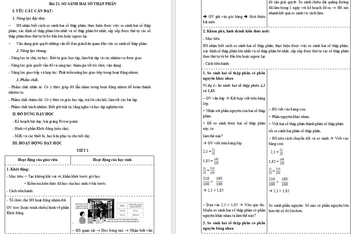 Giáo án PowerPoint Toán 5 Bài 21: So sánh hai số thập phân Giáo án Toán 5 Bài 21 Chân trời sáng tạo (Word + PPT)