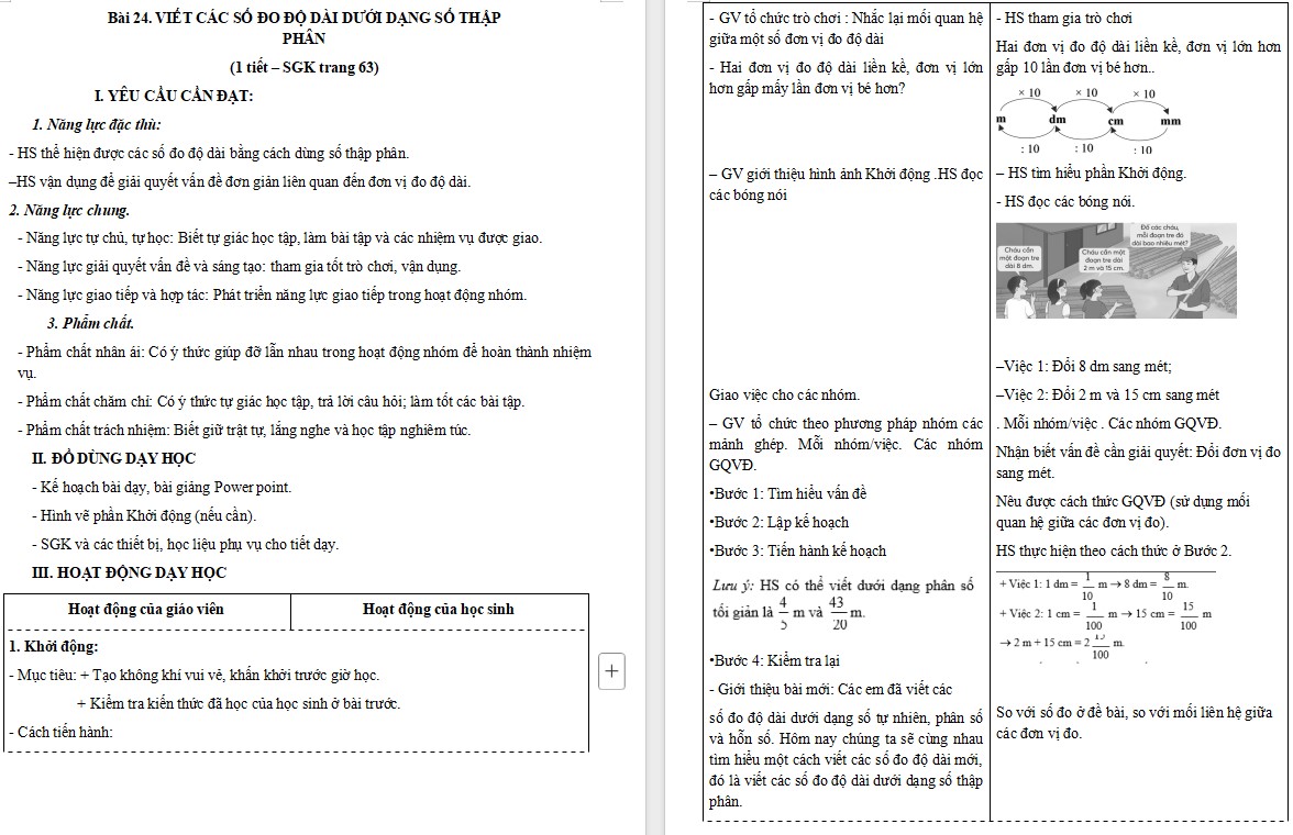 Tìm hiểu thêm »Giáo án Toán 5 Bài 24: Viết các số đo độ dài dưới dạng số thập phân Chân trời sáng tạo dưới đây bao gồm đầy đủ mẫu giáo án word Bài 24 môn Toán 5 bộ Chân trời sáng tạo cùng với bài giảng điện tử Toán 5 Bài 24 được thiết kế đẹp mắt trên phần mềm PowerPoint với nội dung cô đọng súc tích sẽ giúp các em học sinh dễ dàng tiếp thu nội dung bài học.