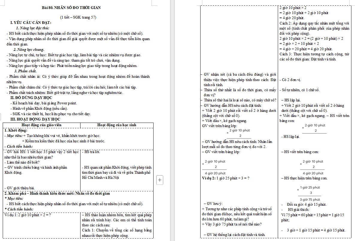 Tìm hiểu thêm »Giáo án Toán 5 Bài 80 Nhân số đo thời gian Chân trời sáng tạo dưới đây bao gồm đầy đủ mẫu giáo án word Bài 80 môn Toán 5 bộ Chân trời sáng tạo cùng với bài giảng điện tử Toán 5 Bài 80 được thiết kế đẹp mắt trên phần mềm PowerPoint với nội dung cô đọng súc tích sẽ giúp các em học sinh dễ dàng tiếp thu nội dung bài học.