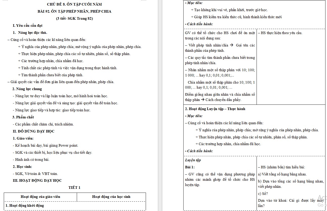 Tìm hiểu thêm »Giáo án Toán 5 Bài 92: Ôn tập phép nhân, phép chia Chân trời sáng tạo dưới đây bao gồm đầy đủ mẫu giáo án word Bài 92 môn Toán 5 bộ Chân trời sáng tạo cùng với bài giảng điện tử Toán 5 Bài 92 được thiết kế đẹp mắt trên phần mềm PowerPoint với nội dung cô đọng súc tích sẽ giúp các em học sinh dễ dàng tiếp thu nội dung bài học.