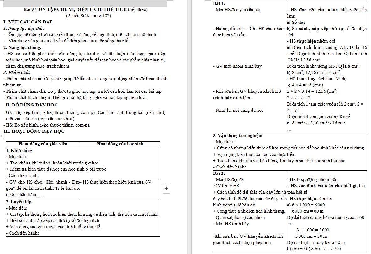 Tìm hiểu thêm »Giáo án Toán 5 Bài 97: Ôn tập chu vi,diện tích, thể tích (tiếp theo) Chân trời sáng tạo dưới đây bao gồm đầy đủ mẫu giáo án word Bài 97 môn Toán 5 bộ Chân trời sáng tạo cùng với bài giảng điện tử Toán 5 Bài 97 được thiết kế đẹp mắt trên phần mềm PowerPoint với nội dung cô đọng súc tích sẽ giúp các em học sinh dễ dàng tiếp thu nội dung bài học.