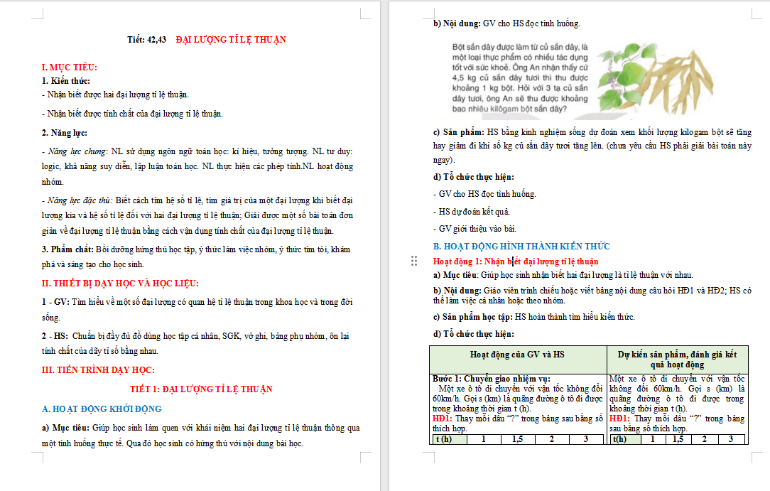 Giáo án Toán 7 Bài 22 Đại lượng tỉ lệ thuận