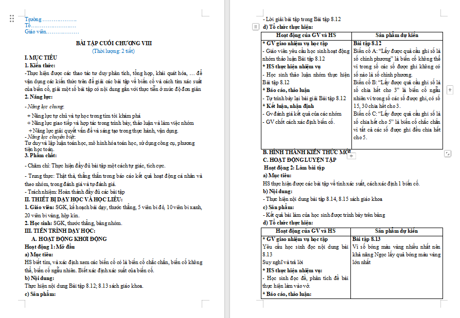 Xem đầy đủ giáo án Toán 7 Bài tập cuối chương 8 Kết nối tri thức trong file tải về