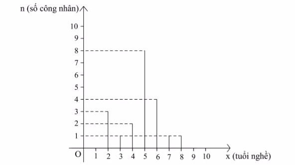 Biểu đồ dưới đây biểu diễn tuổi nghề của một số công nhân trong một tổ sản xuất: