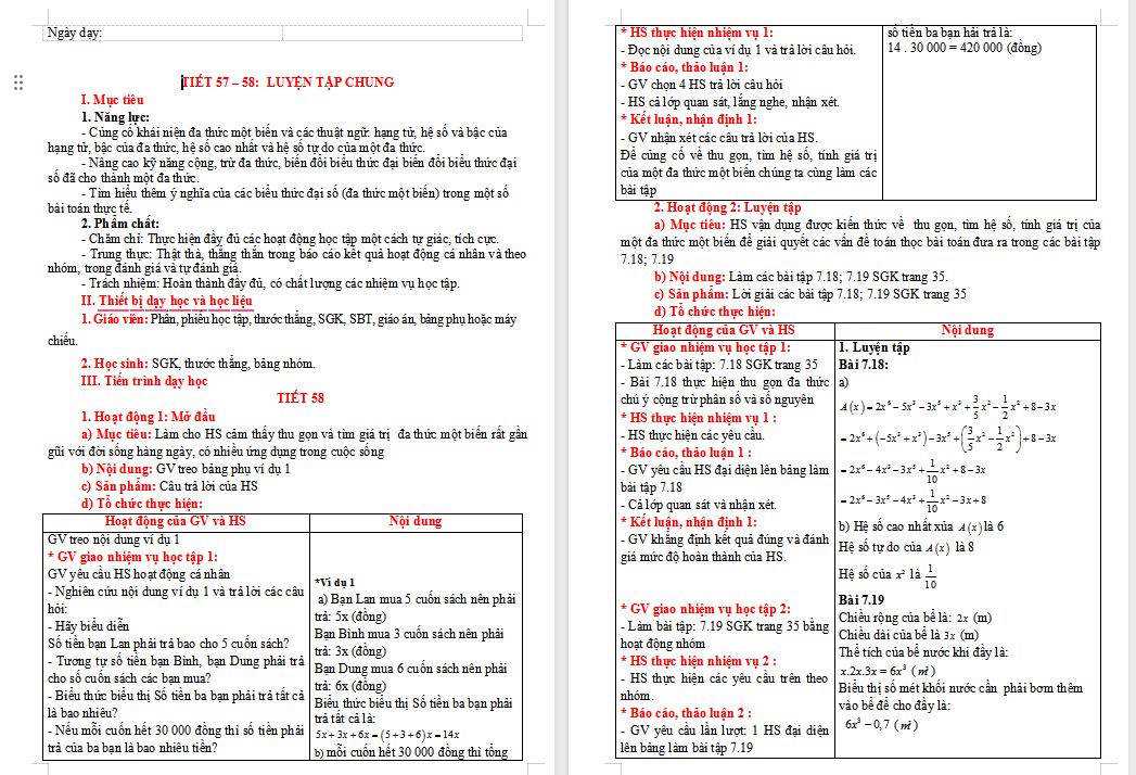PowerPoint Toán 7 Luyện tập chung trang 35 Kết nối tri thức được thiết kế chi tiết bám sát nội dung trong SGK Chương 7 Biểu thức đại số và đa thức một biến với nhiều hình ảnh đẹp mắt, giúp bài giảng trở nên hấp dẫn hơn. Qua đó khơi dậy được sự tò mò, chú ý của người học và khuyến khích người học sáng tạo, khám phá những cái mới. Vậy sau đây là nội dung chi tiết Giáo án Toán 7 Luyện tập chung trang 35 Kết nối tri thức, mời các bạn tải tại đây.