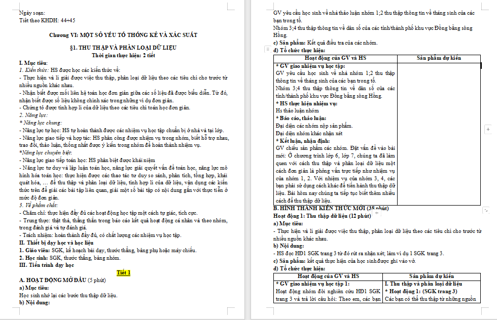 Tải file về để xem trọn bộ giáo án Toán 8 Bài 1: Thu thập và phân loại dữ liệu