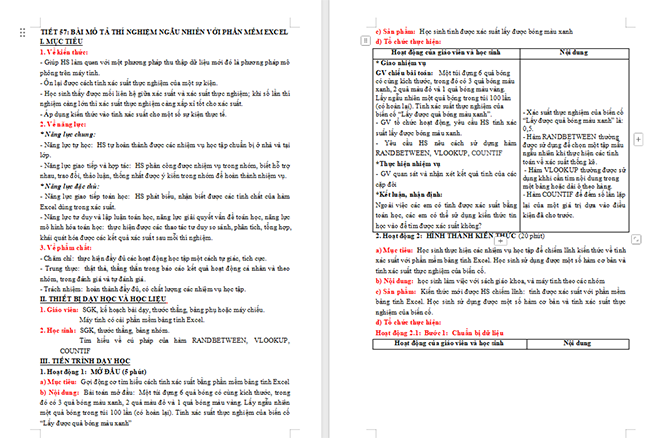 Giáo án PowerPoint Toán 8 Mô tả thí nghiệm ngẫu nhiên với phần mềm Excel là tài liệu rất hữu ích được biên soạn cả dạng Word + PPT. Qua đó giúp quý thầy cô tiết kiệm thời gian làm bài giảng điện tử cho riêng mình.