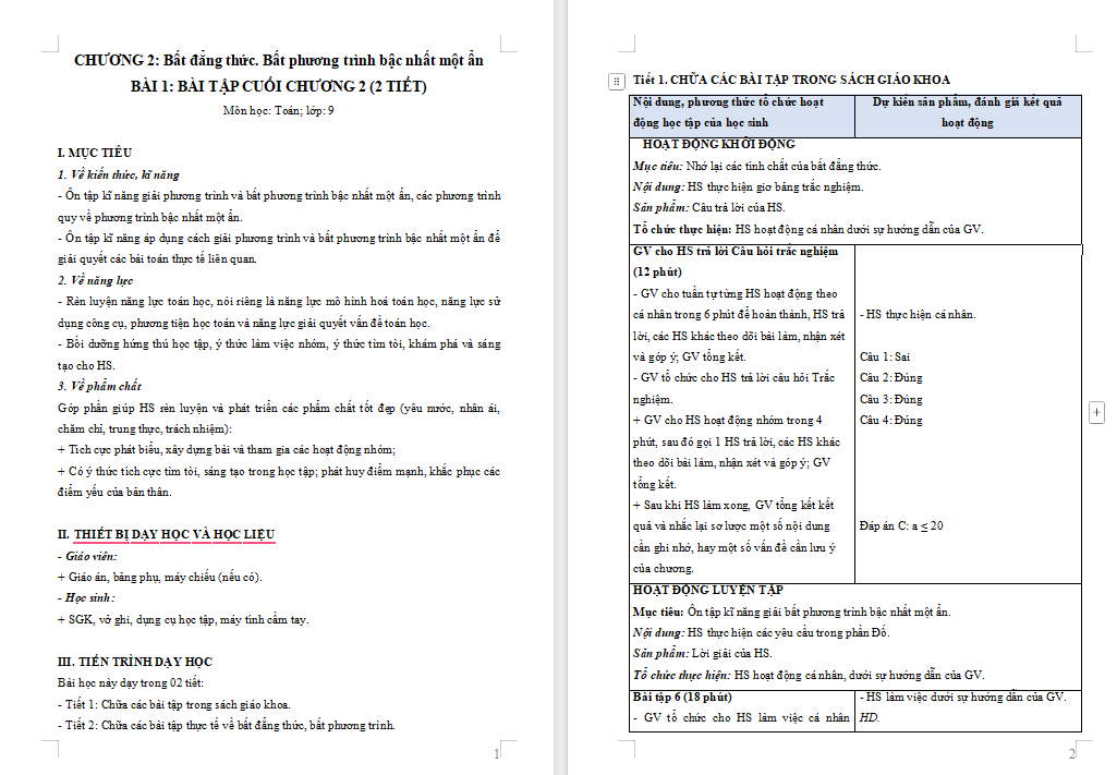 Xem đầy đủ nội dung Giáo án Toán 9 Bài tập cuối chương 2 trong file tải về