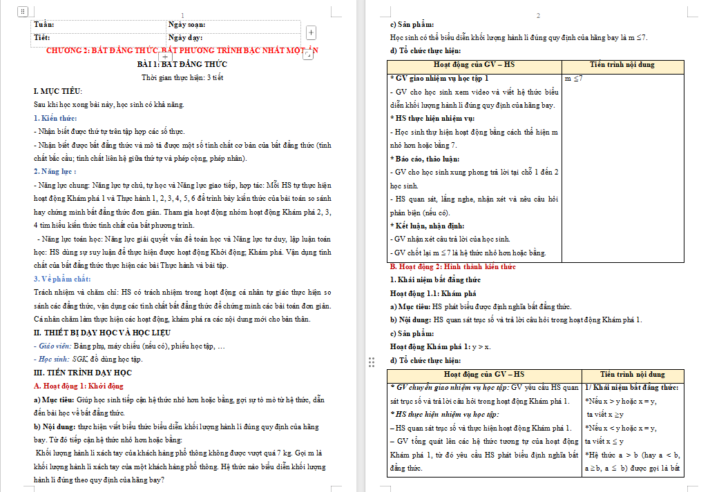 Giáo án Toán 9 Bài 1: Bất đẳng thức được thiết kế chi tiết, với các slide trình chiếu sinh động, có hình ảnh minh họa và câu hỏi gợi mở sẽ khơi gợi sự chú ý và hứng thú của học sinh. Từ đó giúp giờ học trở nên trực quan, hấp dẫn, nâng cao hiệu quả tiếp thu và phát triển năng lực để học tốt môn Toán. Vậy sau đây là nội dung chi tiết bài giảng Toán 9 Bài 1 Bất đẳng thức, mời các bạn tải tại đây.