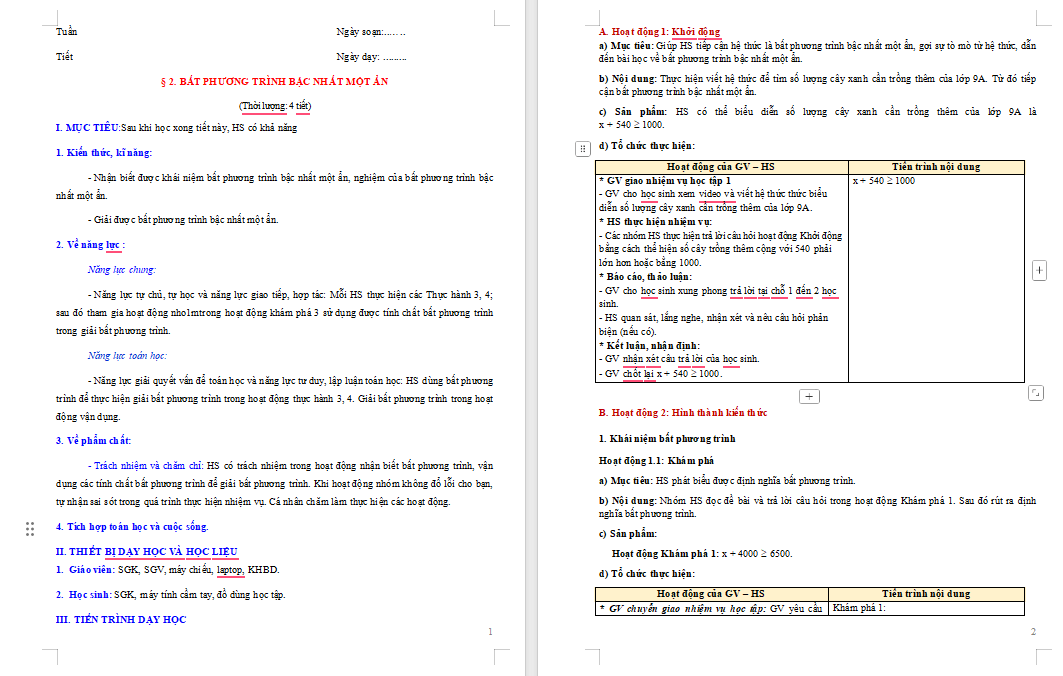 Giáo án Toán 9 Bài 2: Bất phương trình bậc nhất một ẩn được thiết kế chi tiết, với các slide trình chiếu sinh động, có hình ảnh minh họa và câu hỏi gợi mở sẽ khơi gợi sự chú ý và hứng thú của học sinh. Từ đó giúp giờ học trở nên trực quan, hấp dẫn, nâng cao hiệu quả tiếp thu và phát triển năng lực để học tốt môn Toán. Vậy sau đây là nội dung chi tiết bài giảng Toán 9 Bài 2 Bất phương trình bậc nhất một ẩn, mời các bạn tải tại đây.