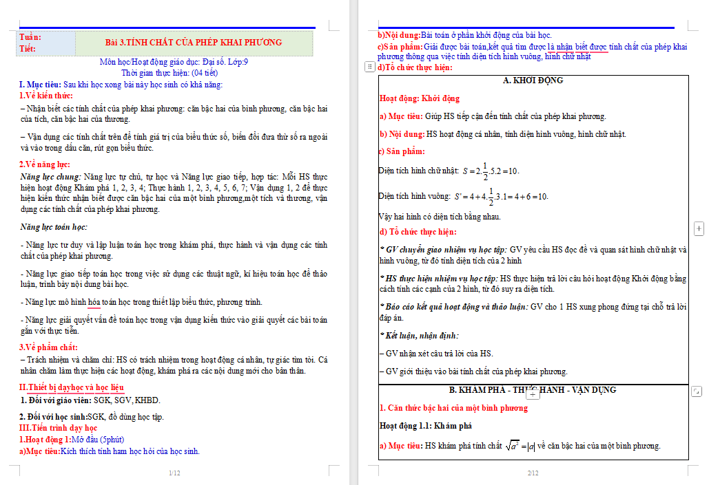 Giáo án Toán 9 Bài 3: Tính chất của phép khai phương được thiết kế chi tiết, với các slide trình chiếu sinh động, có hình ảnh minh họa và câu hỏi gợi mở sẽ khơi gợi sự chú ý và hứng thú của học sinh. Từ đó giúp giờ học trở nên trực quan, hấp dẫn, nâng cao hiệu quả tiếp thu và phát triển năng lực để học tốt môn Toán. Vậy sau đây là nội dung chi tiết bài giảng Toán 9 Bài 3 Tính chất của phép khai phương, mời các bạn tải tại đây.