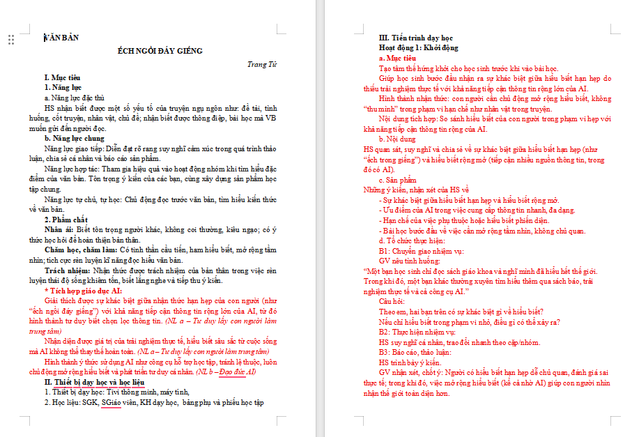 Lưu ý: Giáo án minh họa tích hợp AI môn Ngữ văn 6, 7, 8, 9 Kết nối tri thức gồm có:
