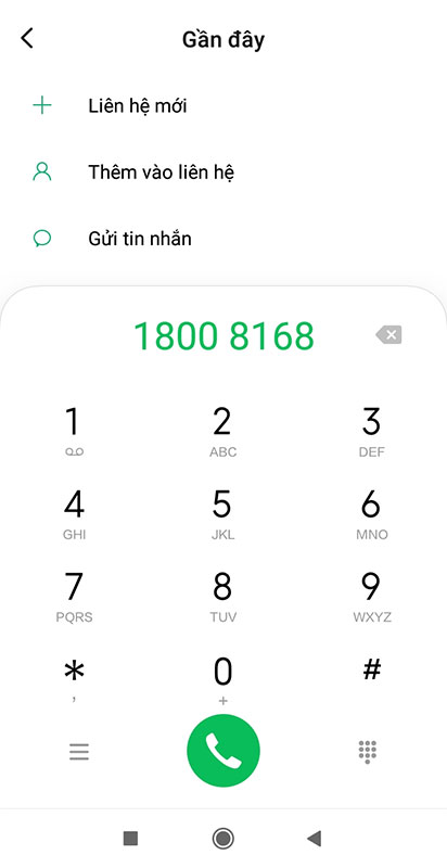 Bước 1: Đầu tiên các bạn vẫn ấn số tổng đài cần gọi như bình thường. Ví dụ như hình dưới là số điện thoại của tổng đài Viettel.