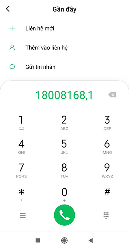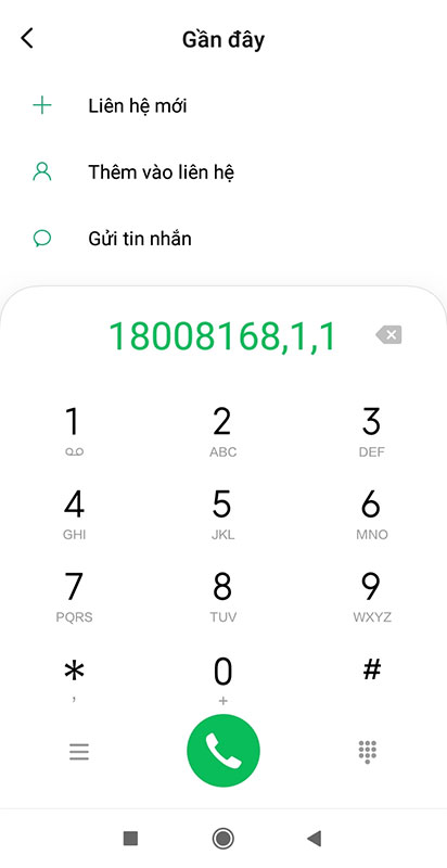 Bước 4: Nhấn nút Gọi trên màn hình để quay số. Nếu có số máy lẻ con, các bạn lại tiếp tục nhập tiếp như trên (VD: 1800 8168,1,2,3)