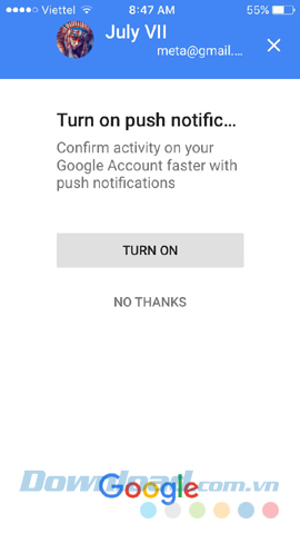 Bước 4: Chọn vào Turn On để kích hoạt Google Prompt cho tài khoản của mình.