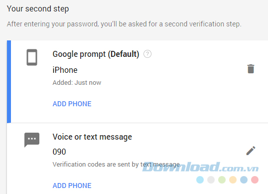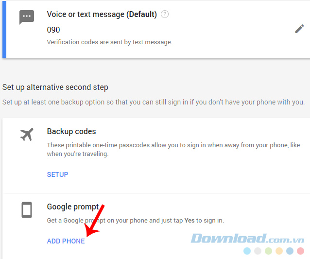 Bước 2: Nhập số điện thoại bạn muốn sử dụng vào khung "What phone number do you want to use? - Bạn muốn sử dụng số điện thoại nào?", đồng thời tick chọn một cách mà bạn muốn Google (gửi mã) khi cần: