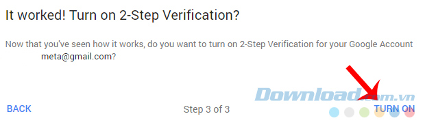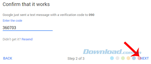 Bước 3: Sau khi nhận được mã xác nhận từ Google, hãy nhập mã này vào Confirm that it works rồi Next.