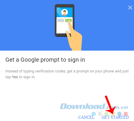 Bước 1: Click vào Get Started - Bắt đầu.