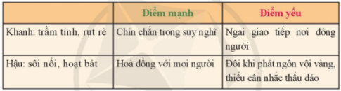 Câu 2. Chỉ ra những điểm mạnh, điểm yếu trong tính cách mà em đã chia sẻ.