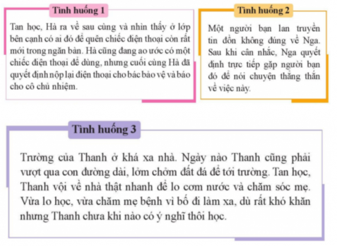 Tình huống 1: Hà đã nộp lại điện thoại cho bác bảo vệ và báo cho cô chủ nhiệm