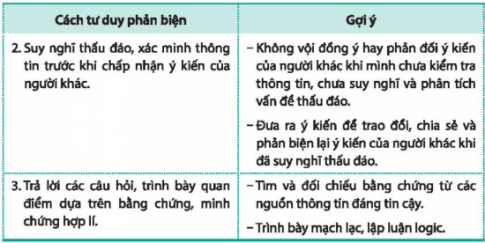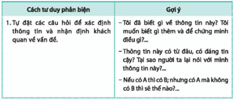 Câu 2. Thảo luận về cách tư duy phản biện khi đánh giá sự vật, hiện tượng theo hướng dẫn sau: