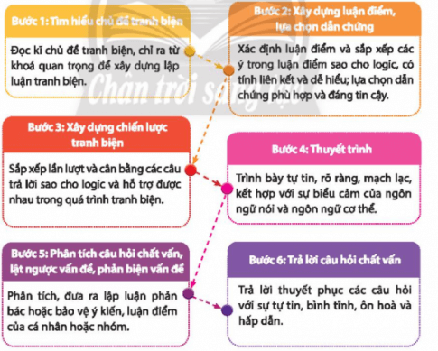 Câu 1. Thảo luận về các bước thực hiện tranh biện và xác định các biếu hiện của tư duy phản biện ở mỗi bước.