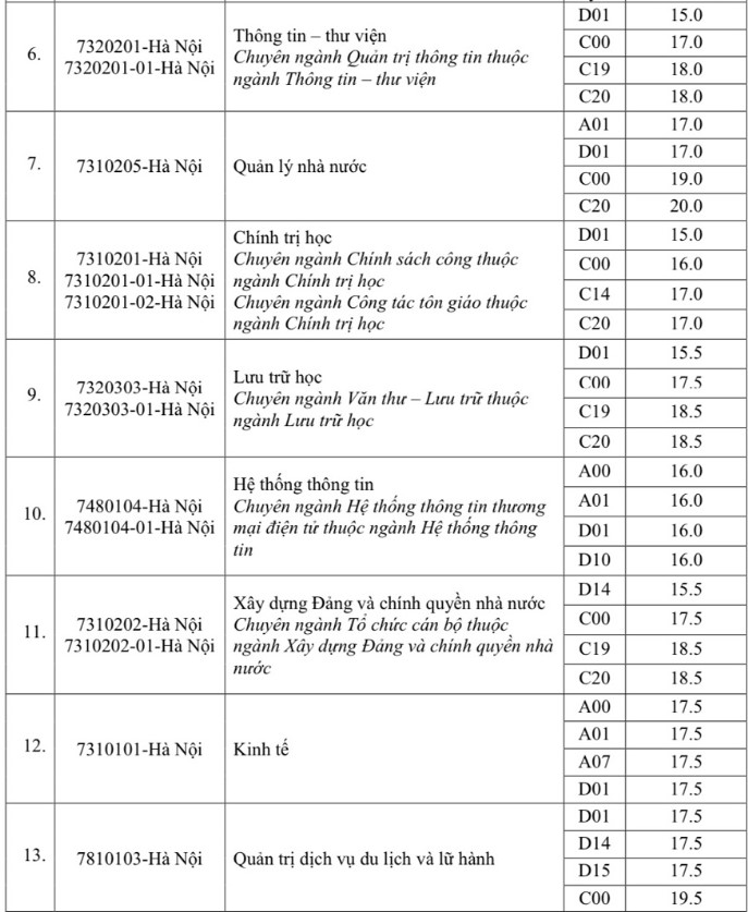 Theo đó, Học viện Hành chính Quốc gia Điểm chuẩn ngành Hành chính công năm 2023 dao động từ 15,0 đến 21,5 điểm. Điểm chuẩn Học viện Hành chính Quốc gia 2023 cao nhất là ngành Quản trị nhân lực. Vậy dưới đây là nội dung chi tiết Điểm chuẩn Học viện Hành chính Quốc gia (phía Nam), Điểm chuẩn Học viện Hành chính Quốc gia (phía Bắc) và Phân hiệu Quảng Nam mời các bạn cùng theo dõi.
