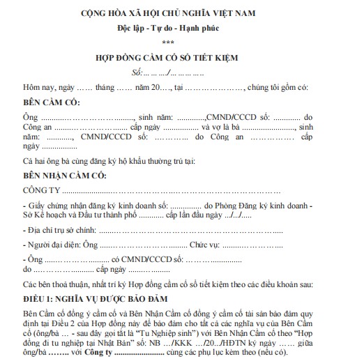 HỢP ĐỒNG CẦM CỐ SỔ TIẾT KIỆM