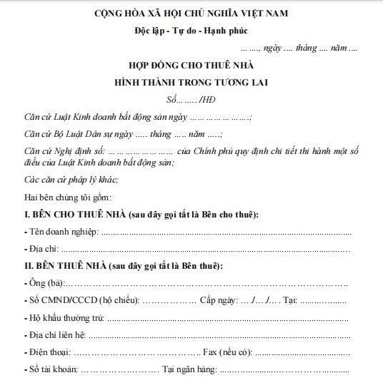 HỢP ĐỒNG CHO THUÊ NHÀ